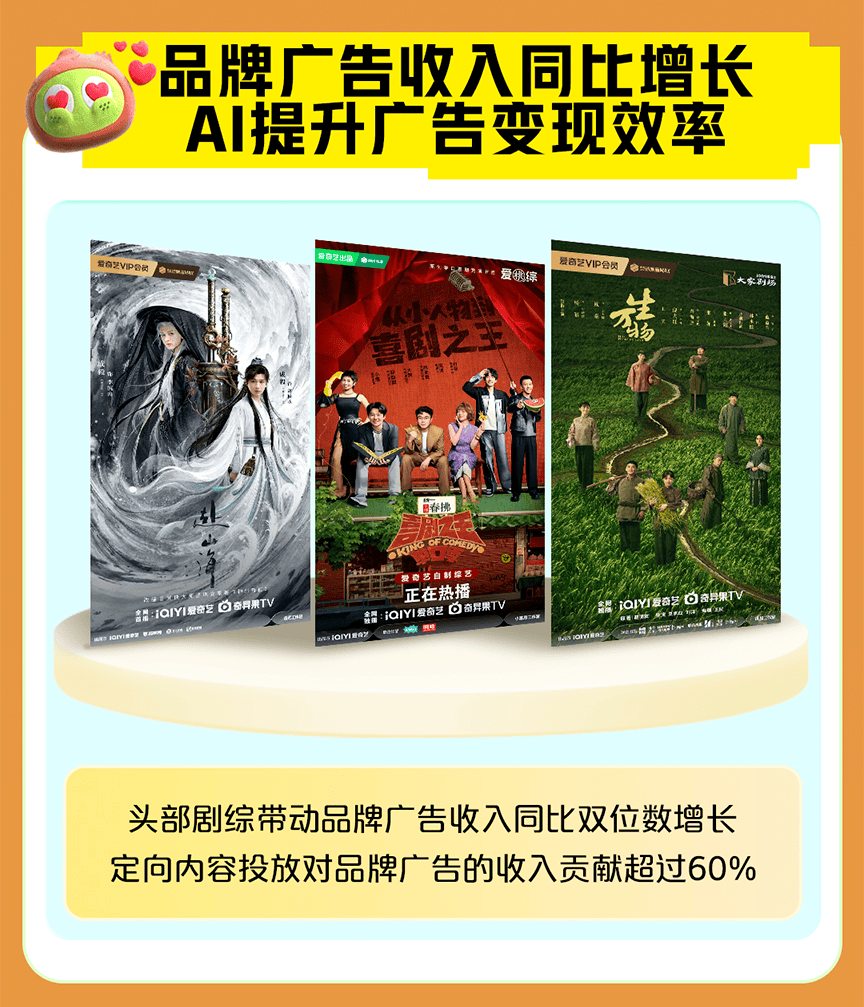 答案或许可以从爱奇艺的财报数据中窥见端倪。爱奇艺Q2-Q3财报显示:在爱奇艺Q2、Q3品牌广告收入中,定向内容投放的广告收入占比分别达到59%和60%以上,占据了品牌广告大盘的半壁江山。