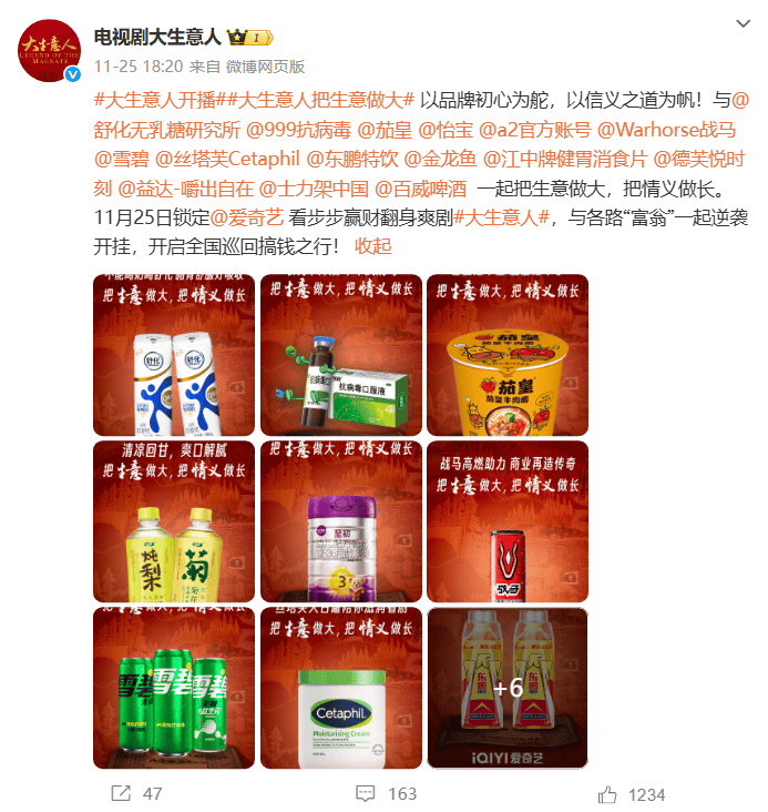 更重要的是,正是基于内容的深度共情,进一步增强了《大生意人》商业化的确定性。毕竟,抓住了人心,自然也就抓住了生意,当千万级的观众愿意将几十个小时的专注力投入到一部剧中时,内容商业化也随之迎来了最肥沃的土壤。