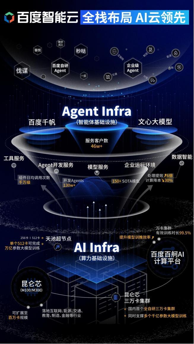 想要帮助企业内化AI能力,就需要有新型基础设施来支撑。“这就是包括AI Infra和Agent Infra的全栈AI云。”会上,百度集团执行副总裁、百度智能云事业群总裁沈抖分享,百度智能云将提供完善的AI云基础设施,为企业内化AI能力做好全面准备。