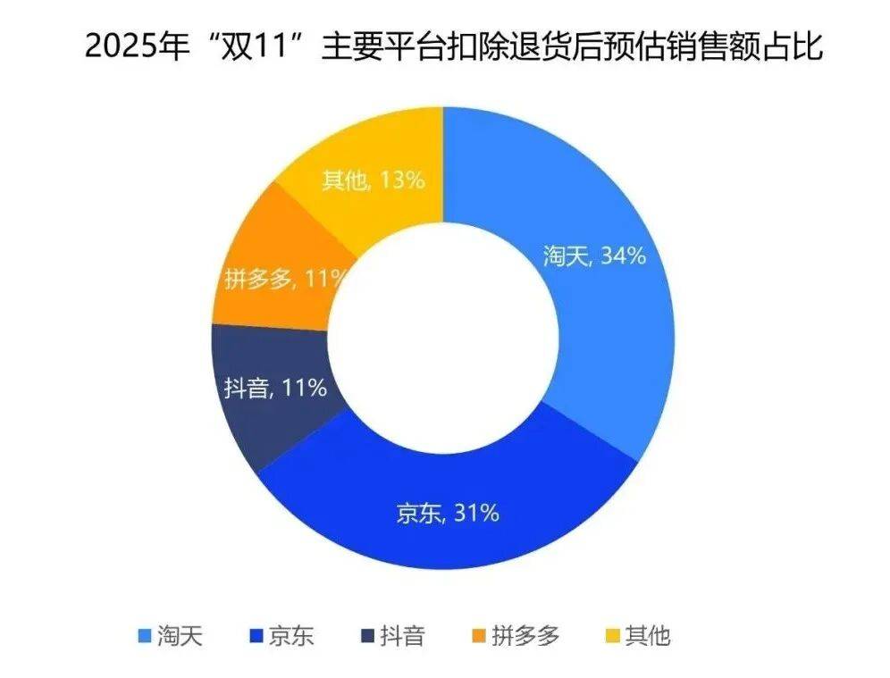 超级供应链的硬实力,最终都沉淀为“好品质”,直接拉高了成交质量。复旦消费大数据为证:京东11.11期间的预估销售份额提升至25%,扣除了退货的“水分”后,其占比不降反升,达到了31%。