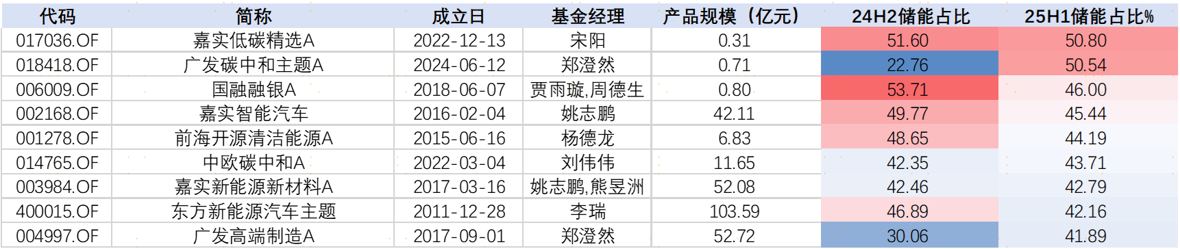 数据来源:Wind,储能占比来自基金中报、年报披露的全部持仓
