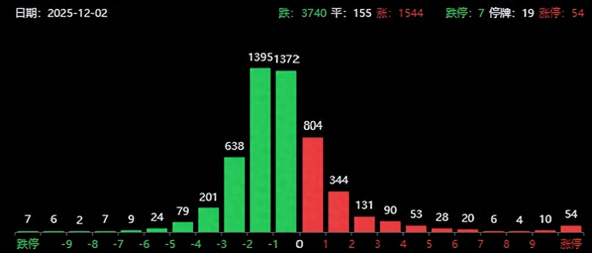 这才12月份的第二个交易日,市场就已经如此平淡如水了,昨天好不容易放量,今天又缩量了2800亿,基本把昨天放的量都给缩回去了,超过3700家下跌。