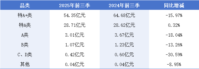 三季度利润腰斩,特A类、A类酒品营收明显下滑