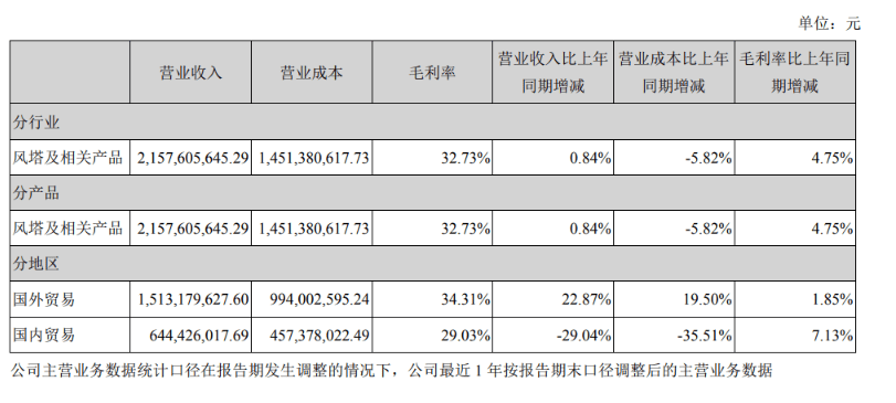 天顺风能核心业务陆上风塔及相关产品的毛利率,已从高点超过32%一路下探,近年来在4%的水平线上下挣扎。近两年业绩更是显示,公司陆上风塔的营收与交付规模均有所收缩。