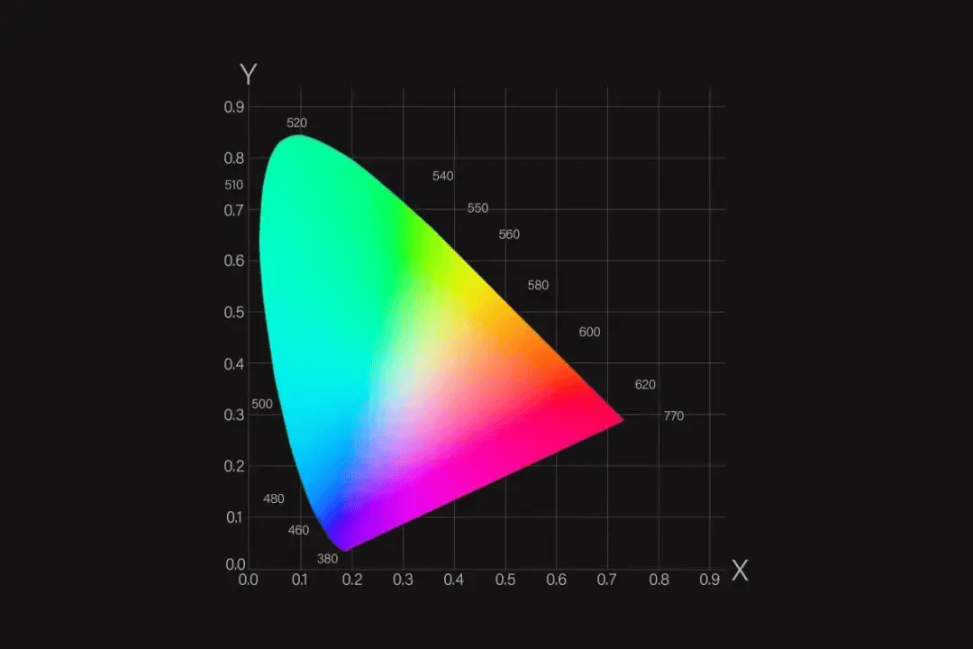 在专业“色域马蹄图”上,色彩世界的边界清晰可见。