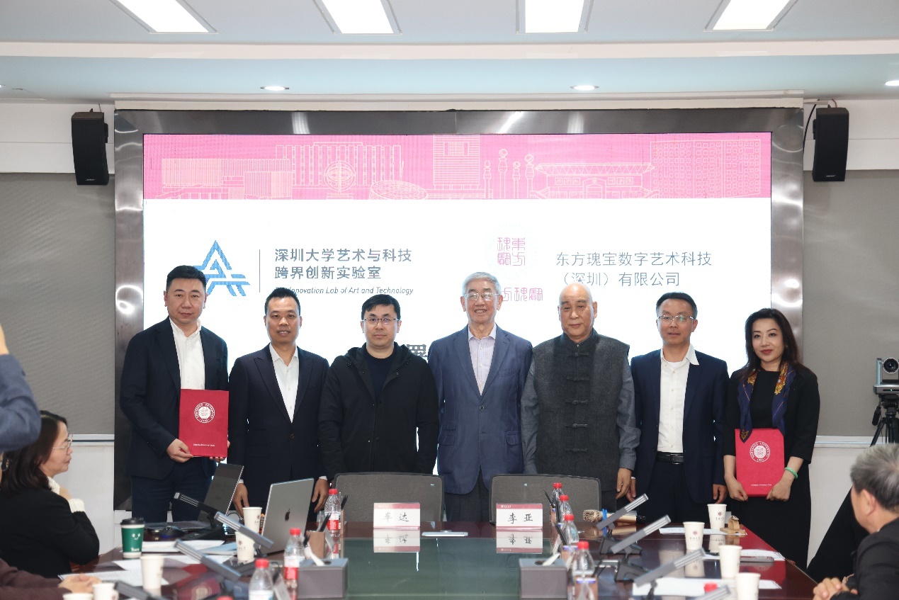 2026年1月9日,深圳大学艺术与科技跨界创新实验室与东方瑰宝数字艺术科技(深圳)有限公司在深圳大学粤海校区举行战略合作签约仪式,共同启动“纹样点亮世界文明计划”。该计划旨在通过科技与艺术的深度融合,推动中国古代艺术品的数字化保护、研究与全球传播,构建具有开放共享特征的文化遗产数字化创新平台。