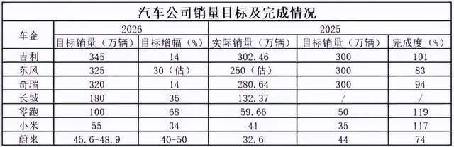 先看吉利。2025年吉利以302.5万辆的成绩收官,超额完成目标。但对于2026年,吉利只定下了345万辆的目标,整体增长率仅14%。这不再是冲刺,而是结构性调仓。、