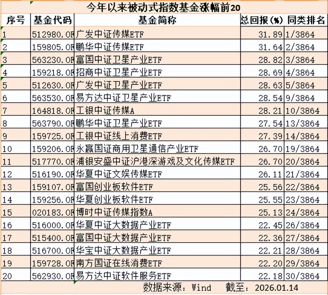 Wind数据显示,截至1月1日收盘,有903只被动式指数基金净值涨幅超过10%,其中67只超过20%;有465只指数增强型基金涨幅超过5%,其中66只涨幅超过10%。