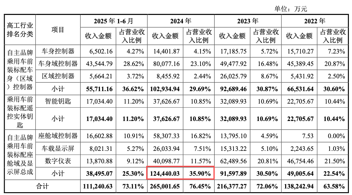 埃泰克通过不断优化业务结构,实现了从单一产品向多产品线的布局。公司业务覆盖车身域、智能座舱域、动力域及智能驾驶域四大功能域,形成了完整的汽车电子产品体系,有效分散了单一产品线带来的经营风险。