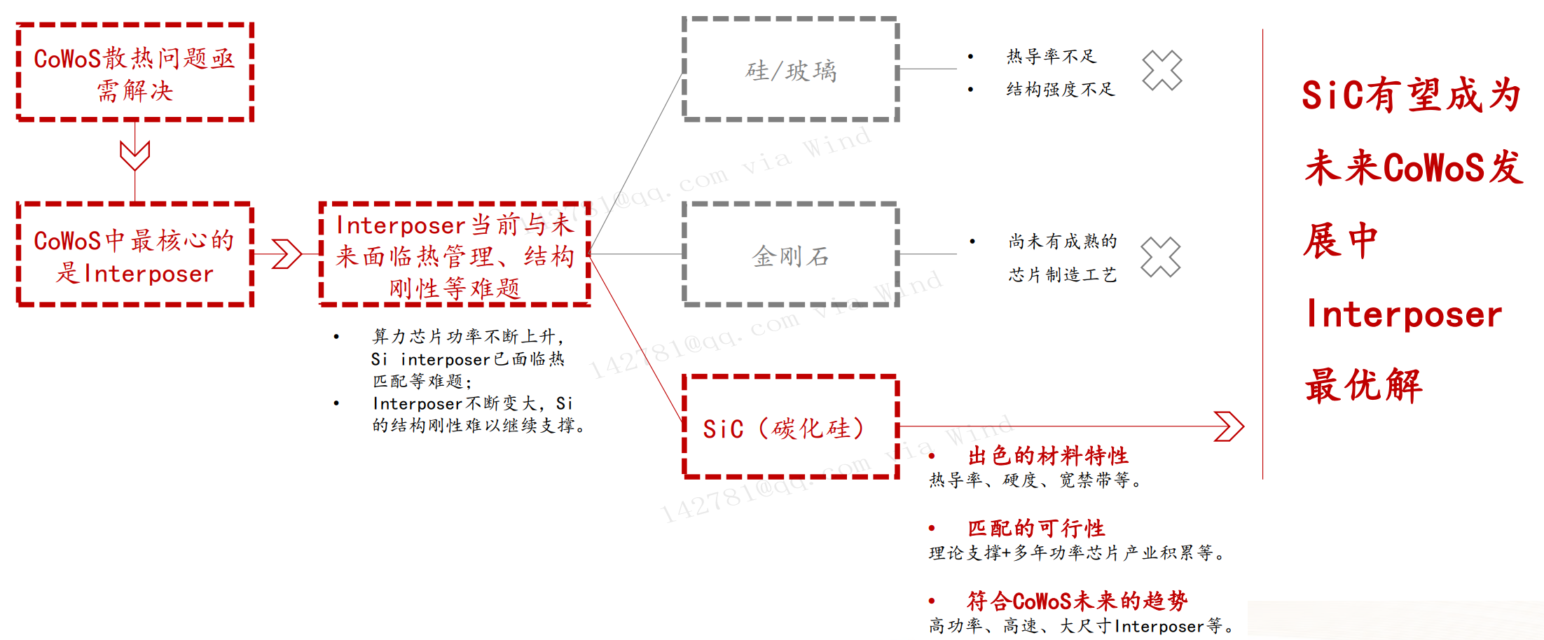 图片说明:关于论证SiC作为CoWoS下一代中介层Interposer材料的证据时,采用第三方的结论,数据来源于某券商