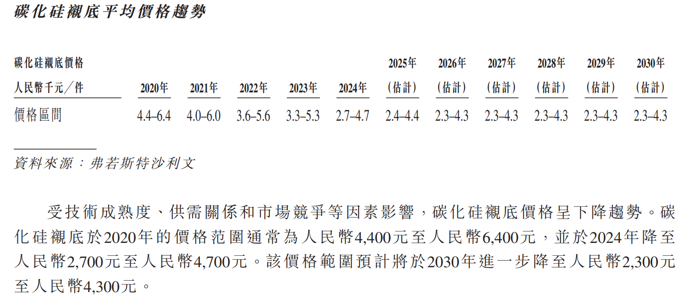 图片说明:2024年SiC晶圆的单价约2700~4700元/片,数据来源于天岳先进港股招股书