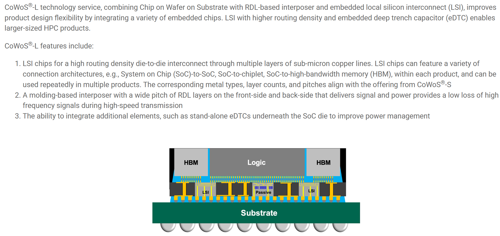 图片说明:CoWoS-L工艺结构示意图,数据来源于台积电