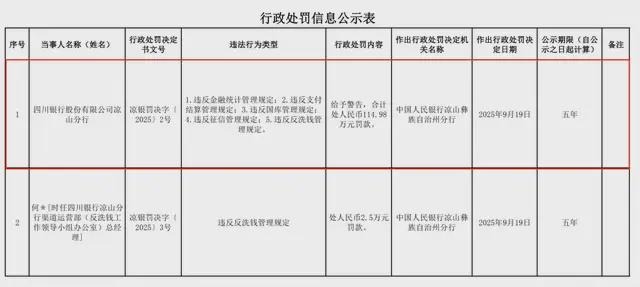 2025年9月,四川银行凉山分行因违反金融统计管理、支付结算管理等多项规定,被警告并处罚款114.98万元,暴露出合规管理在基层的普遍松弛。更严峻的信号来自其并购整合进程。