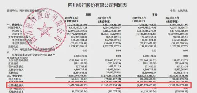 尽管截至2025年9月末,四川银行合并口径的资本充足率为15.72%、核心一级资本充足率为10.24%,表面上均高于监管最低要求,但这一看似稳健的资本状况背后隐忧重重:持续高企的信用减值损失不断侵蚀拨备和利润,进而直接消耗银行的资本基础。
