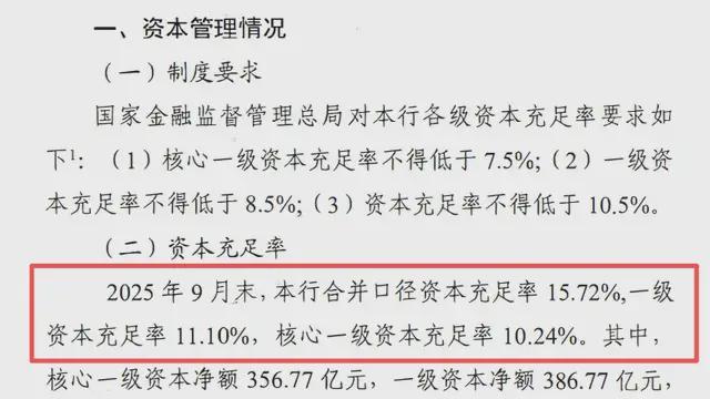 尤其在风险加权资产规模已达3484.40亿元、而核心一级资本净额仅为356.77亿元的情况下,实际可用的资本缓冲空间已相当有限,应对未来资产质量恶化或市场波动的韧性明显不足。