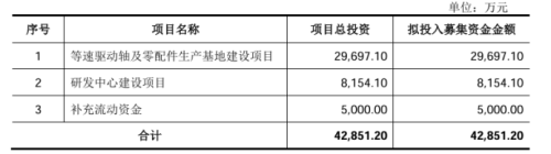 此次IPO,腾励传动拟募集资金为6.84亿元,较前次申请的4.29亿元大幅增加。腾励传动拟投入3.66亿元用于等速驱动轴及零配件生产基地建设项目和9407.79万元用于研发中心建设项目,新增1.45亿元用于汽车零部件生产基地升级改造项目,并计划募集8000万元补充流动资金。