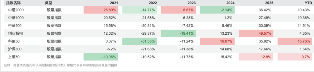 其中科创50受商业航天、AI算力、存储、半导体等主题带动,截至1月27日年内涨幅达15.76%,在主流宽基指数中领跑。