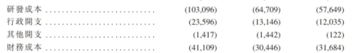 而在成本支出方面,勤浩医药占比最大的是研发投入。报告期内,公司研发成本分别为1.03亿元、5764.9万元,行政开支分别为2359.6万元、1203.5万元,财务成本分别为4110.9万元、3168.4万元。