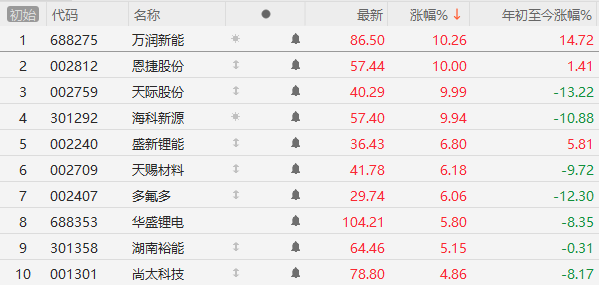 今天锂电材料板块大涨,天际股份、恩捷股份涨停,$万润新能(SH688275)$万润新能、$海科新源(SZ301292)$海科新源、盛新锂能、$天赐材料(SZ002709)$天赐材料等多股大涨。