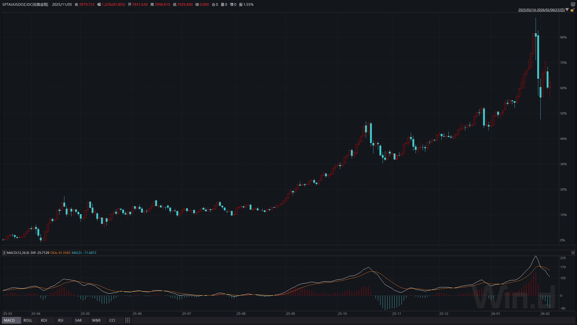 2月6日,国际贵金属价格再度反弹,现货黄金涨逾2%,收复4900美元/盎司关口;现货白银涨逾6%,收复75美元/盎司水平。