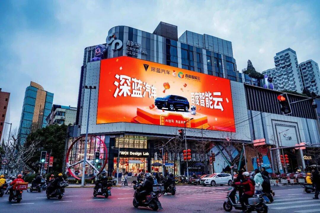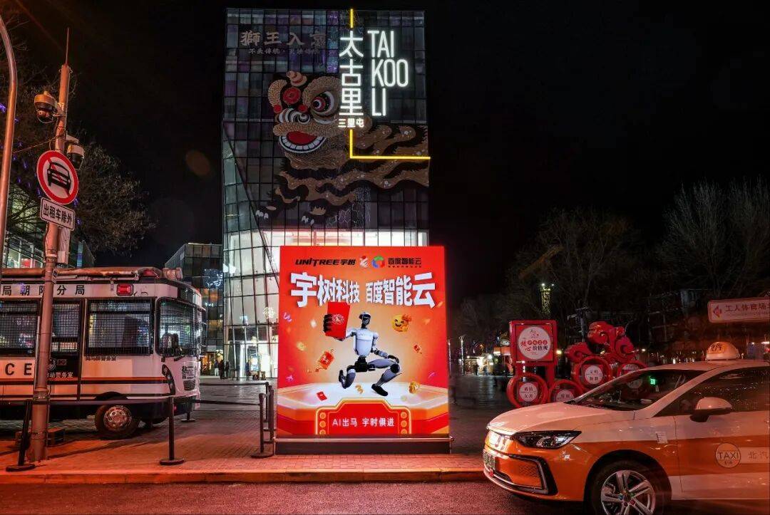 与此同时,北京三里屯、上海静安等各大商圈,上架了百度智能云与海底捞、名创优品、蒙牛、宇树科技、深蓝汽车、追觅等国民品牌的海报。