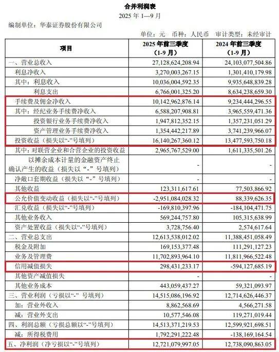 2025年前三季度公允价值变动损益同比相比大幅下降的主要原因是什么?信用减值损失为何大幅计提?资管业务为何大幅下滑?「子弹财经」就相关问题致函华泰证券方面,但截至发稿前并未得到回复。