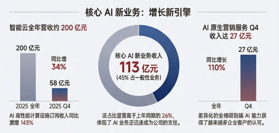 利润端的波动与资产减值,从另一个角度看反而是积极信号。传统互联网业务的估值被重置,而AI业务开始提供新的现金流来源。2025年下半年经营现金流转正,意味着AI业务已经具备造血能力。