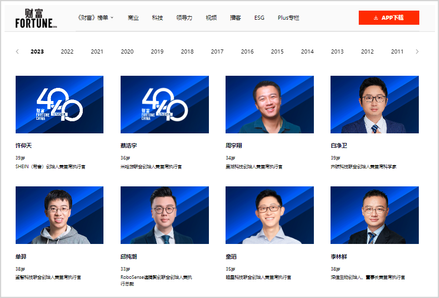 2023年,许仰天位列《财富》“中国40位40岁以下的商界精英”排行榜第一,但由于过于神秘,未能找到照片。图源:《财富》网站截图