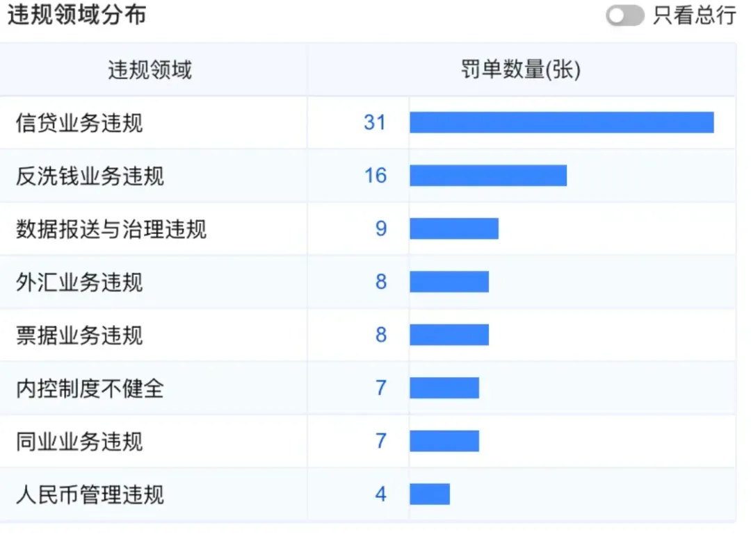 如果把2025年的罚单按季度拆解,还能看到一个令人不安的趋势:违规没有“淡旺季”。 一季度因贷款违规被罚,二季度因数据报送问题被罚,三季度因信息系统被罚,四季度又因反洗钱不力被罚。这种“轮流挨打”的节奏表明,问题并非集中在某个业务条线或某个区域分行,而是渗透到了银行的每一个角落。
