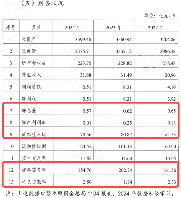 联合资信在2025年评级报告中指出,该行资本充足率从2022年的13.05%降至2024年的11.58%,考虑其信贷资产质量面临下行压力,资本面临一定的补充压力。