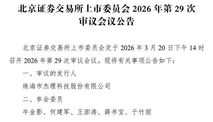 中国产经观察消息:2026年3月20日,北京证券交易所上市委员会将召开审议会议,审议珠海市杰理科技股份有限公司(以下简称“杰理科技”)的首发事项。这家历经四次IPO征程的芯片企业,此次上会审核备受市场关注,然而其背后隐藏的诸多风险点,却让投资者对其上市前景充满疑虑。