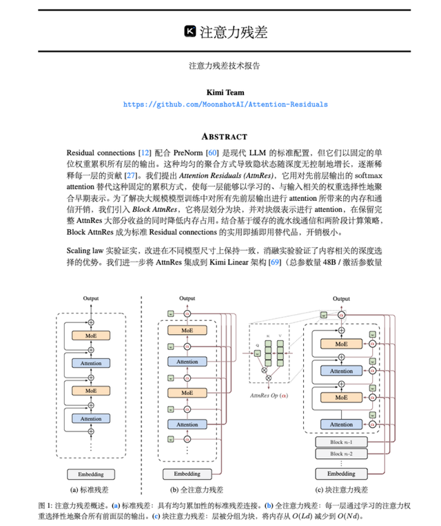3月16日,月之暗面Kimi发布了一项技术报告《Attention Residuals》(注意力残差),重新设计了深度学习中核心的残差连接结构。