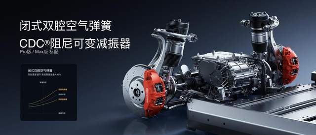 首先是硬件配置升级,小米蛟龙底盘全系装配前双叉臂、后五连杆独立悬架系统,Pro版和Max版配备闭式双腔空气弹簧和CDC阻尼可变减振器,可智能识别路面状况,通过主动调节悬架,降低刚度以缓冲冲击,通过后再增大阻尼抑制车身晃动,大幅提升通过舒适性;同时车辆支持悬架自动升高功能,可记忆举升点位,在进入对应地理围栏时自动升高车身,驶出后自动恢复原车高度,兼顾通过性与日常驾乘质感。
