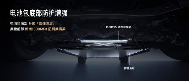 小米高度重视电池研发能力的建设,通过自建电池包工厂,深入掌握电池制造技术。新一代SU7以更高标准升级车身结构安全,对电池包的顶部、侧部和底部实施全方位物理防护,有效保障整车在极端碰撞和复杂路况下的结构完整性。全系标配1500MPa高强度防刮底横梁,并采用与SU7 Ultra同款的「防弹涂层」,更耐刮擦、耐穿刺,全面增强整车在复杂路况下的安全表现。