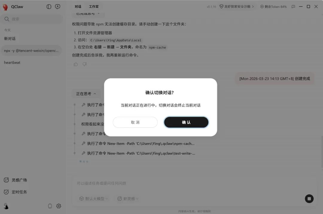最让我没想到的是,QClaw不可以同时执行多个任务,一旦执行新任务,现有任务就会被中断。