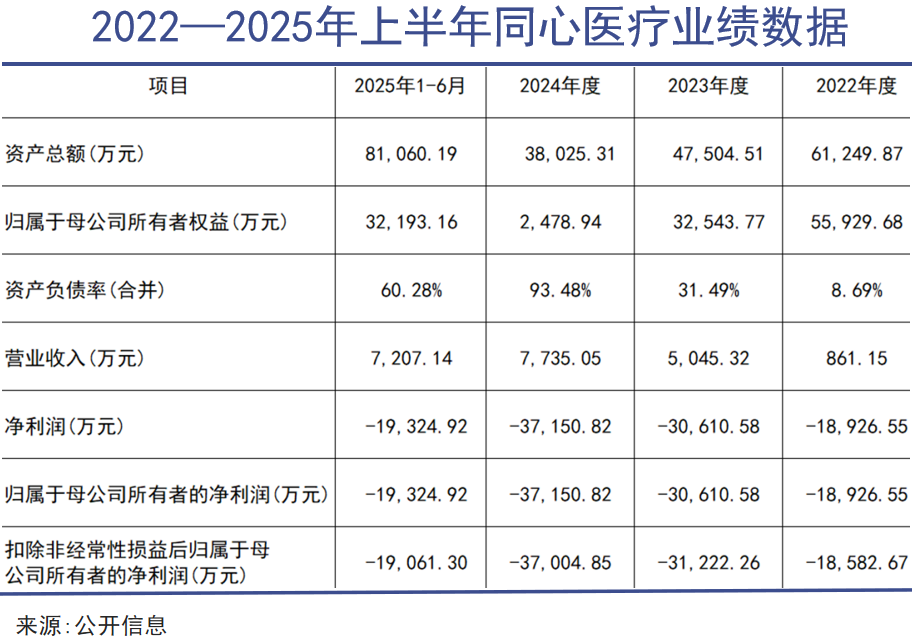 招股书显示,2022年至2025年上半年,同心医疗营业收入从861.15万元猛增至7207.14万元,但其归母净利润分别为-1.89亿元、-3.06亿元、-3.72亿元、-1.93亿元,三年半时间累计亏损超过10.6亿元,亏损规模逐年扩大。