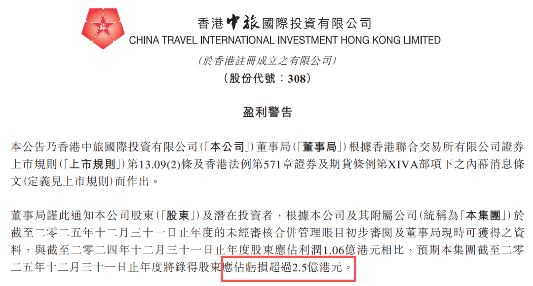 3月23日,香港中旅发布盈利警告。