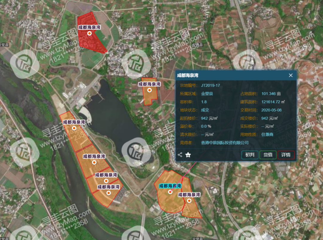 中旅在成都金堂拿地情况,截自投资云地图