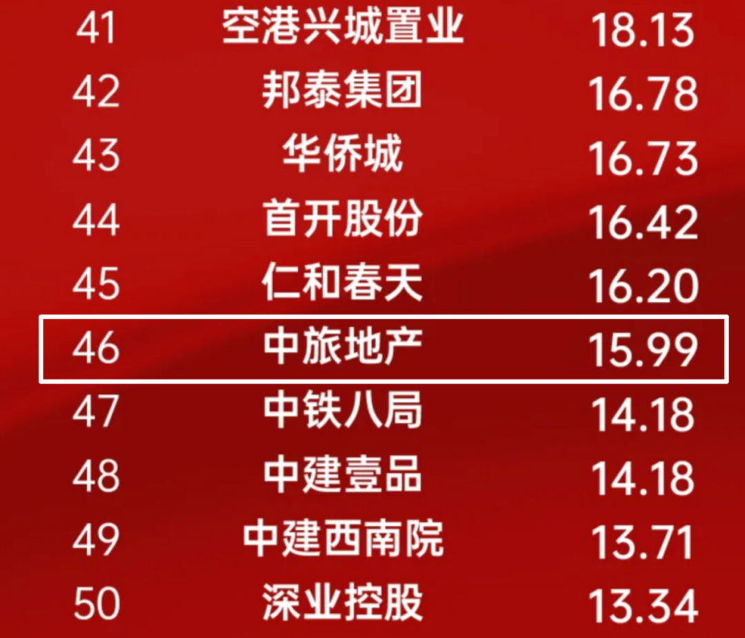 从开发能力看,当头部房企通过高端产品线和产品力实现高溢价时,中旅虽然也在积极拿地,却在产品打磨和品牌声量上远逊于对手。所以此类企业本身在品牌上看似具有品牌价值,但真正反映到销售数据,可能连一个头部房企的区域公司的业绩也不如。