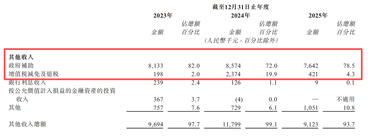 招股书显示,2024年公司确认为其他收入的政府补助达857.4万元,对当年利润的贡献率高达103%,完全覆盖了净利润。