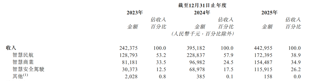 2025年,智慧民航、智慧商业与智慧安全驾驶业务的营收占比分别提为38.9%、34.9%、26.2%,收入结构朝多元化方向改善。