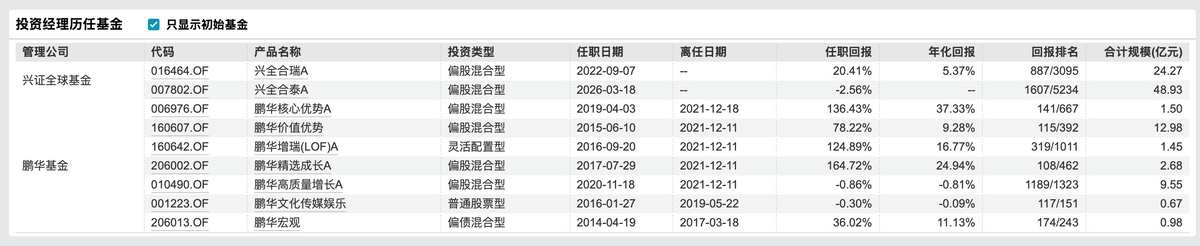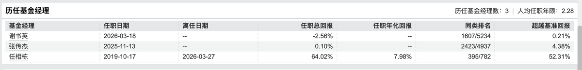 此次调整后,任相栋不再管理任何产品。