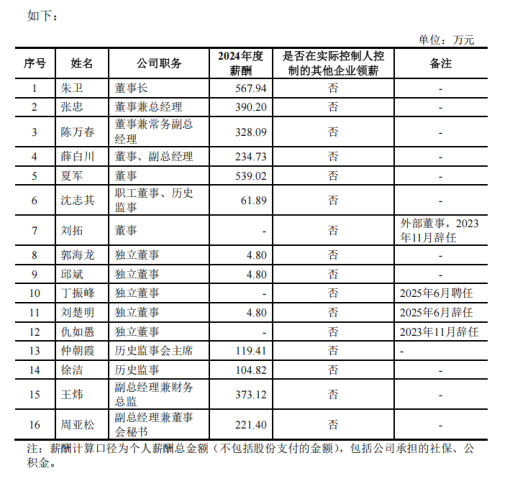 2024年,9名核心高管薪酬合计达2878.73万元,人均超300万元。