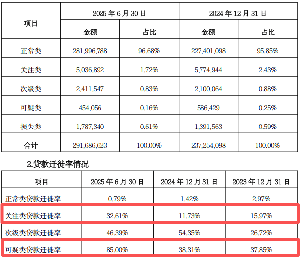 2025年半年报显示,西安银行的关注类贷款迁徙率,从2024年末的11.73%增至32.61%;可疑类贷款迁徙率从2024年的38.31%猛增至85%,反映该行贷款转化为不良损失的风险较大。