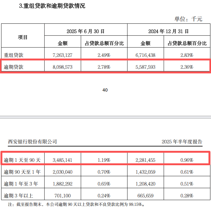 (图 / 西安银行2025年上半年逾期贷款情况(来源:西安银行2025半年报))