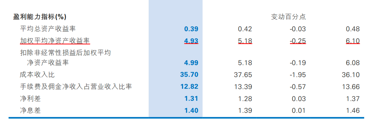 此外,反映银行运用自有资本效率的核心指标——加权平均净资产收益率(ROE)降至4.93%。平均总资产收益率(ROA)也仅为0.39%。尽管成本收入比同比下降1.95个百分点至35.70%,显示费用管控有所努力,但整体盈利能力和为股东创造价值的能力仍然薄弱,亟待修复。
