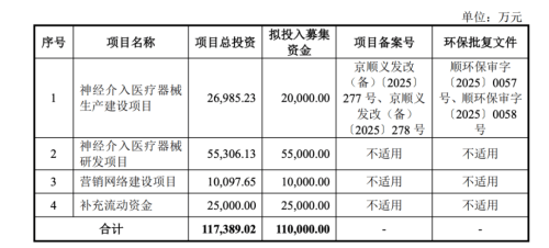 此次募集资金中,艾柯医疗计划2亿元用于神经介入医疗器械生产建设项目,5.5亿元用于神经介入医疗器械的研发项目,1亿元布局营销网络建设,另有2.5亿元用于补充流动资金。