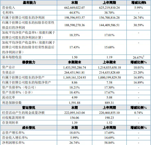 4月14日,新三板创新层公司幺麻子(874322.NQ)发布2025年年报:营业收入6.63亿元,同比增长5.99%;归母净利润1.99亿元,同比大增26.74%;毛利率攀升至44.87%,较上年提升约6.17个百分点。