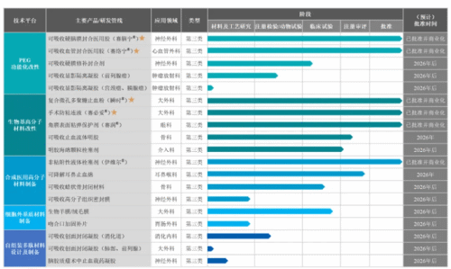 此外,赛克赛斯可吸收止血流体明胶、吸收性明胶海绵颗粒栓塞剂、可降解耳鼻止血绵预计2026年上市,目前均处于注册审评阶段;可吸收硬膜修补封合剂、可吸收蜡状骨封闭材料、生物羊膜类创面修复产品均处于临床试验阶段;可吸收显影隔离凝胶、可吸收高分子组织密封膜、脑胶质瘤术中止血载药凝胶、可吸收创面封闭凝胶、非粘附性液体栓塞剂迭代产品、角膜相关创新耗材及骨科可吸收新材料预计均处于工艺研究及注册检验阶段。