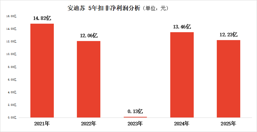 从核心经营数据来看,安迪苏2025年盈利表现明显不及上年,2024年公司扣非净利润为13.46亿元,2025年降至12.23亿元,同比下滑幅度达到9.18%。